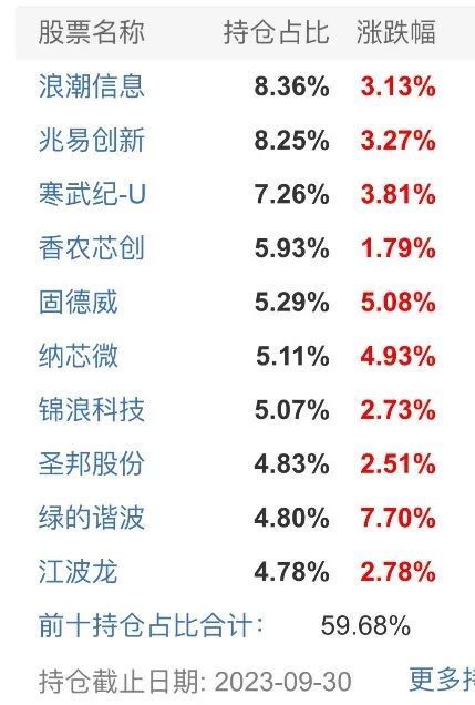 截至2023年9月末,招商优势企业基金前十大持仓均是成长股,有着很强的新兴产业味道,如下图所示: