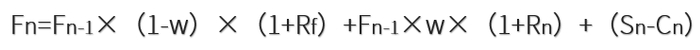 其中,Fn表示第n年末家庭财富;w表示投资于有风险资产(以股票为代表)权重;Rf 表示无风险利率(如存款或国债收益率);Rn 表示第n年风险资产收益率;Sn 表示第n年家庭工资性收入;Cn 表示第n年家庭一般消费支出。