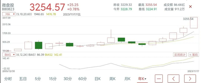 今年的市场,到底是熊市还是牛市,不同的人可能有不同的看法,虽然沪深300跌了将近8%,但有一个宽基指数,年初到现在大涨了44%,就是微盘股指数。