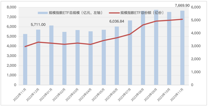 (数据来源:沪深交易所,截至2023/11/21,规模指数ETF包括宽基ETF和对应的增强策略ETF,不包括跨境ETF)