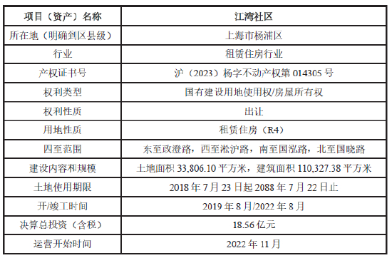 其中,上海城驰持有的坐落于上海市杨浦区新江湾城国泓路392弄1号等的江湾社区项目,包括房屋所有权及占用范围内的国有建设用地使用权;上海城业持有的坐落于上海市杨浦区新江湾城学德路27弄1-3、5-10、3_3号的光华社区项目,包括对应的房屋所有权及占用范围内的国有建设用地使用权。