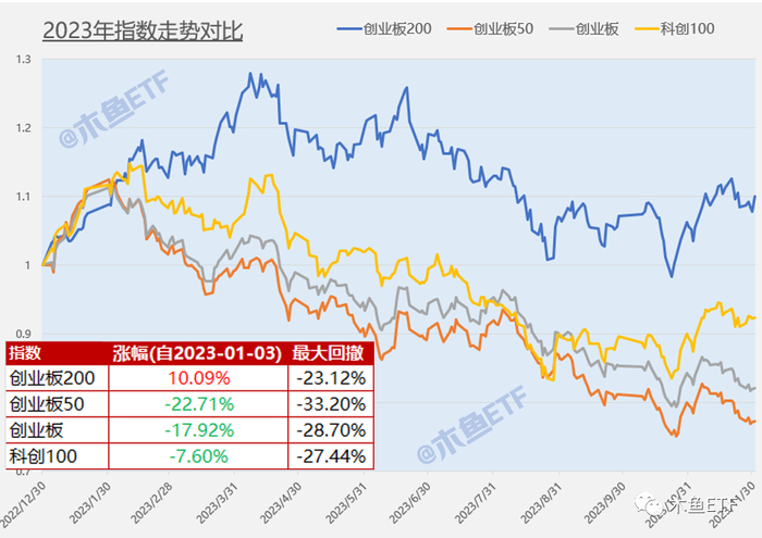 与传统创业板双雄以及另外一只新锐科创100来比较一下走势,我们可以看到创业板200与老创业板完全就不是一个路数的。因此我们指出,把创业板200当创业板绝对是误会。