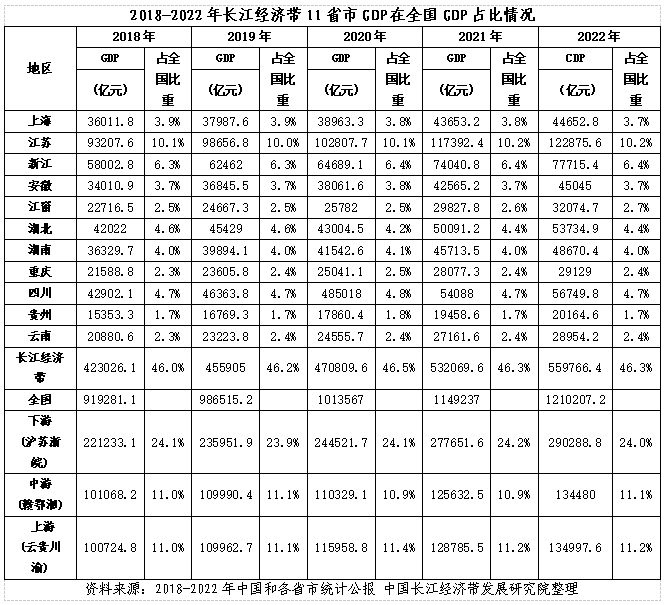 数据显示,2022年长江经济带11个省市区GDP总量高达56万亿,占全国的比重为46.3%,人口总量约为6亿人,占全国的比重为43%。
