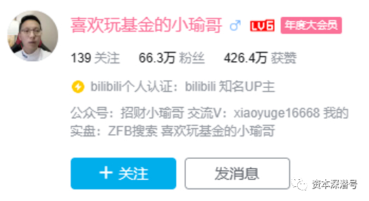 “喜欢玩基金的小瑜哥”是活跃在各大公众平台的知名基金大V。