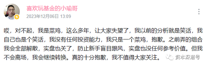 2023年,市场里终于出现了一个知名基金大V宣告“结束公开基金实盘”。