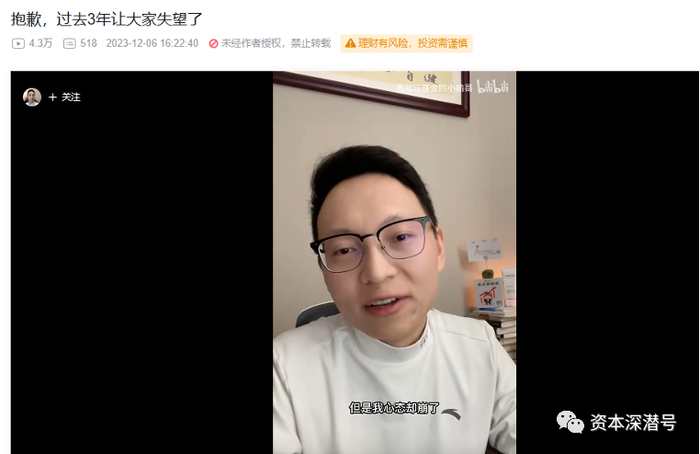 12月6日的傍晚前后,他又在B站发布了视频,标题是,“抱歉,过去3年让大家失望了”。