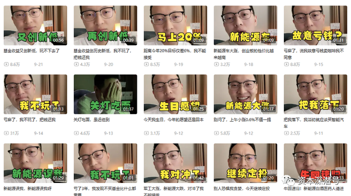 随后,小瑜哥似乎找到了“感觉”,一方面,他坚持和基民们分享个人的投资感受,另一方面,他“接地气”的表达,和视频主题,也帮助他积累了粉丝。