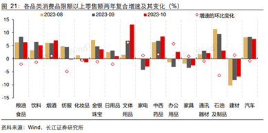 分品类看,非必需消费表现较好,包括烟酒、汽车、文体用品、药品等。