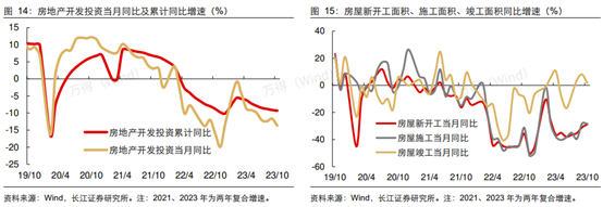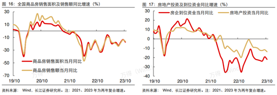 地产方面,1-10月累计新房销售额-4.9%,跌幅近一步走阔,新开工同比跌幅-23.2%,仍未有起色。