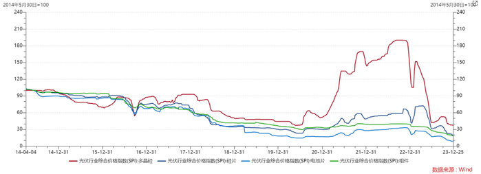 目前电池片,11月底以来存量老旧perc产能陆续降产、停产,预期2024年在topcon的冲击下,部分产能或将直接退出市场;硅料,低价部分已跌至55元/kg,击穿部分厂商成本线,已有产能开始停炉技改,后续随着硅片稼动率调降,硅料价格继续下行,硅料高成本产能或将开始优化出清。