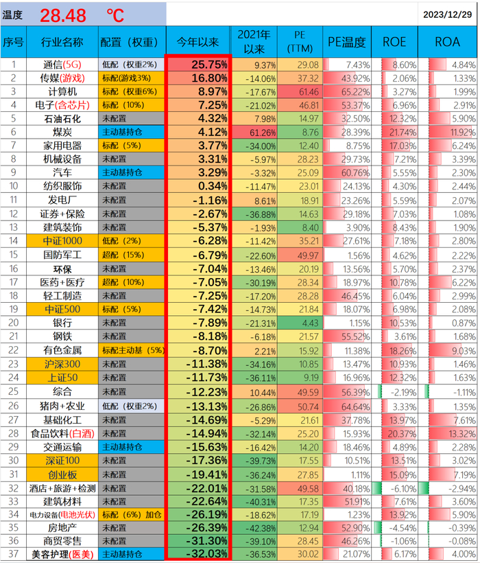 博格统计了一下,2023年行业涨幅排名:
