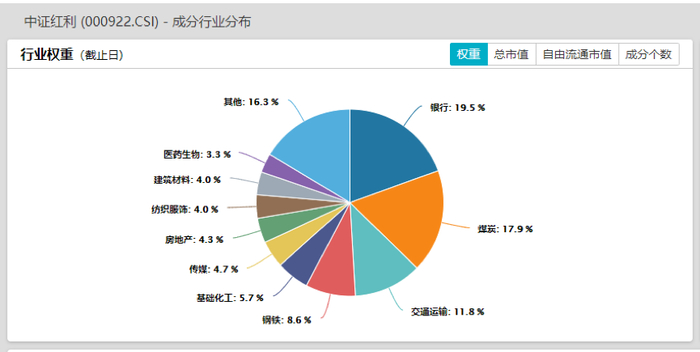 总体来看,中证红利指数行业分布很广泛,共计覆盖20个申万一级行业,其中银行、煤炭、交通运输、交通运输、钢铁、化工等权重较高;同时前十大成分股非常分散,占比仅15.68%。