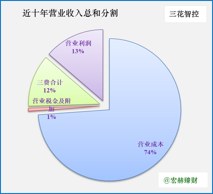 看十年累计数据中公司成本和费用的占比。