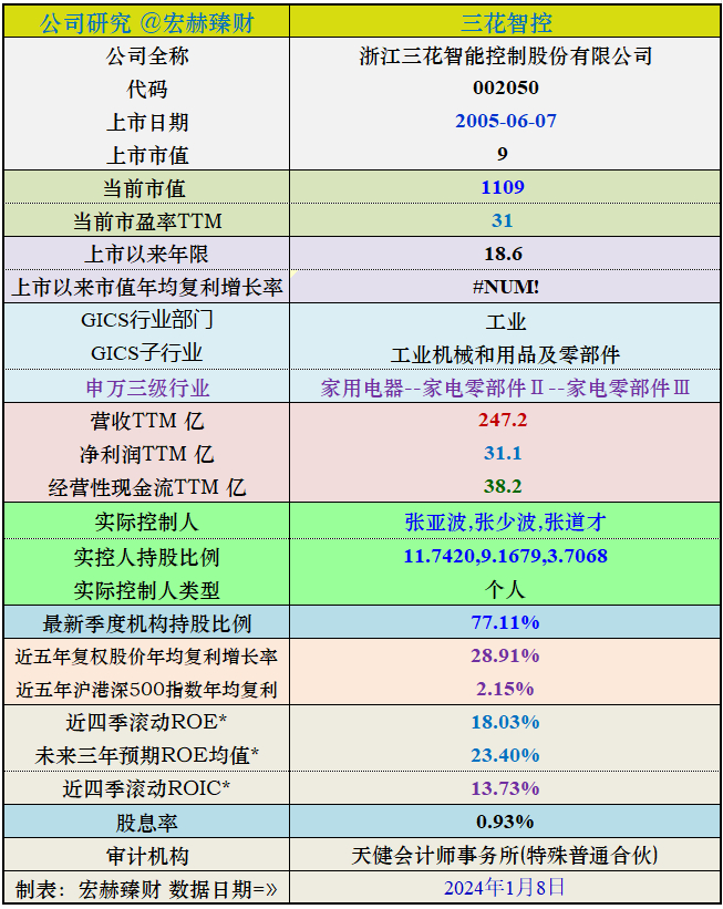 上市公司投资价值评分-三花智控