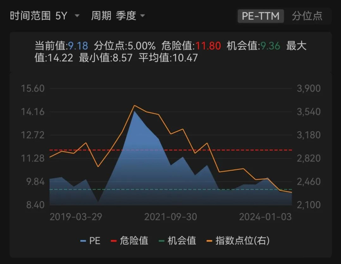 具体来看,估值方面,目前指数PE-TTM9.18倍,处于近5年5%的低分位处。