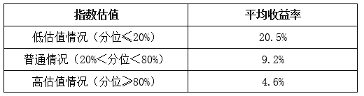 统计历史数据可以发现,在低估区间开始定投,有望获得更高的收益。