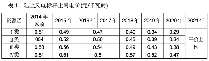 近几年来,随着国民经济的快速发展,电力消费的平均水平呈现出逐年提高的趋势。国家把重点放在经济的稳定和持续发展上,电力需求增速放缓,同时燃煤发电的基准价格也出现了下滑态势,国家已经数次对可再生能源的上网价格进行了调整,其中陆上风电的上网价格变化情况[]如表1所示: