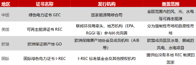 3)国际:I-REC由总部位于荷兰的NGO组织I-REC Standard进行签发,涵盖光伏、陆上海上风电、水电、潮汐发电、生物质发电、沼气发电等。