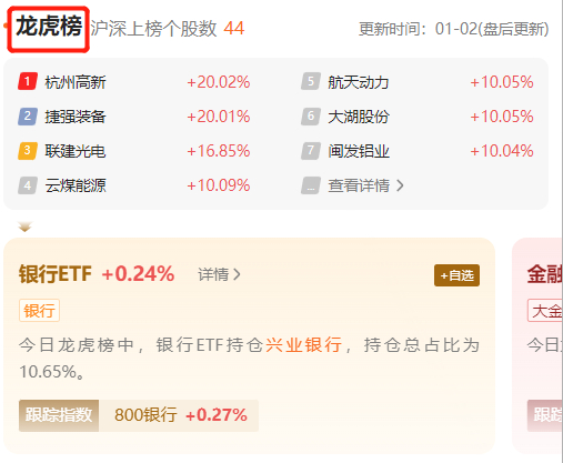 红色火箭还有一个特色就是设置了个股龙虎榜,上榜主要看该个股的涨跌情况、换手率等。如果你对近期热度较高的个股感兴趣,可以点击该个股,进行匹配搜索,就能马上看到包含该个股的指数以及ETF基金,还能看到其持仓占比情况。也就是说,如果你担心股票的波动性太大,又想搭上这趟前进的列车,就可以考虑选择匹配的指数基金,而且查找起来也方便。