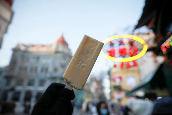 3天卖出10万支马迭尔冰棍,成为大家口中的谈资,这个本身就成为景区的冰淇淋品牌,在今年的冬天感受到了南方朋友的热情。
