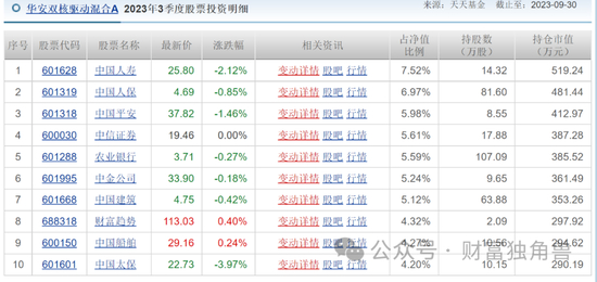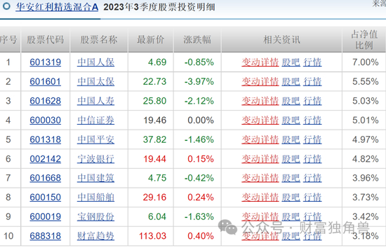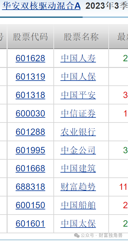 值得关注的是,笔者发现,华安红利精选混合A、华安安进灵活配置混合发起式A、华安双核驱动混合A三只基金,在2023年3季度前十大重仓股中均持有中国人寿、中国人保、中国平安、中信证券、中国建筑、财富趋势、中国船舶。持股同质化有可能放大市场波动,基金的同质化极有可能放大了市场的波动。