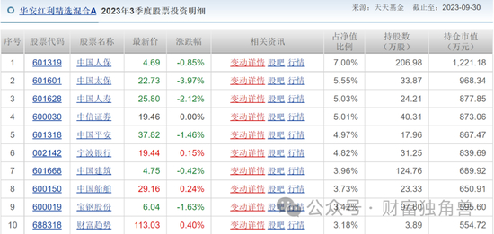笔者还发现,该基金在2022年2季度前,前十大重仓股有医药、白酒、保险股。但自2022年2季度基金经理变更之后,基金的风格出现变化,前十大重仓股风格变得保险和银行股,据2023年3季报显示,前十大重仓股中国人寿、中国人保、中国平安、中信证券、农业银行、中金公司、中国建筑、财富趋势、中国船舶、中国太保这是否涉嫌风格漂移?