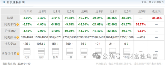 笔者翻看该基金各季度报告发现,该基金在2023年1季度持有199.89万股的中国平安(位列第十),2023年2季度持有184.98万股,2023年3季度持有170.15万股(位列第三)。然而,从2023年5月9日-2024年1月10日中国平安股票价格下跌了27.85%。