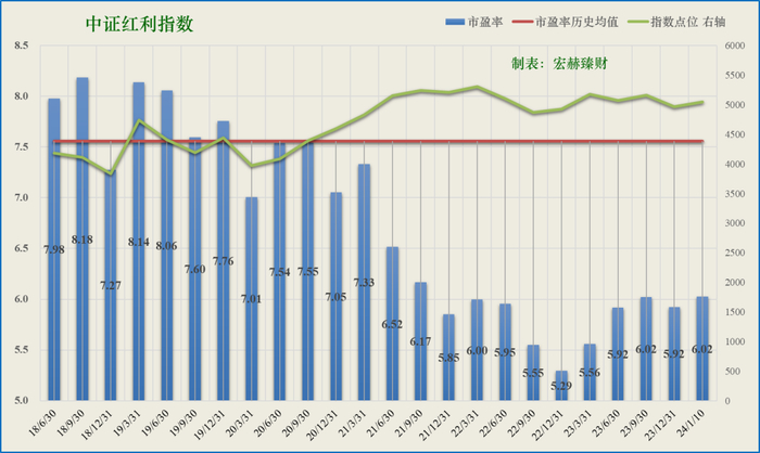市盈率:中证红利指数指数自2018/05/26日启用以来历史季度市盈率均值6.76倍,最大值为180930日的8.18倍;最小值为221231日的5.29倍。当前值6.02倍,处于历史区间的百分位:【25%】