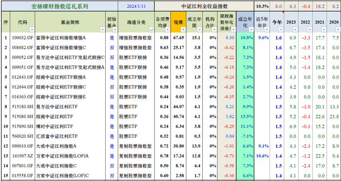 据iFinD数据,截止2024年1月11日,市场上跟踪该指数的指数基金共15只(初始基金9只,非初始基金6只)