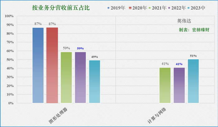 第一主营业务图形处理器占营收比权重为49%,近三个整年度同比增幅分别为:-7%、4%、61%;