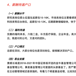 作为总部在深圳的基金公司,景顺长城大部分岗位解决深圳户口并不难。