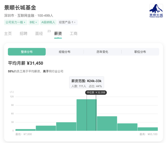 从看准网披露的数据来看,景顺长城员工的平均月薪约31450元。