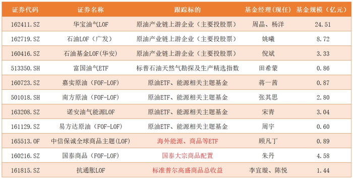 这里头我们唯一要区分的就是底层资产的投向,比如华宝油气LOF(162411),其投资方向主要原油产业链上游企业(主要投股票),而南方原油(501018)和诺安油气(163208)则主要是原油ETF和能源相关的主题基金,详细如下所示: