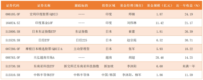 投资亚洲市场的QDII基金主要覆盖印度、日本、越南、新加坡、韩国。