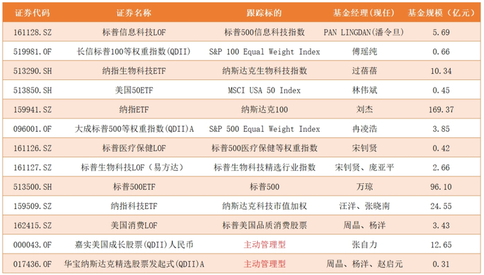 此外,在行业主题指数方面,加速布局了标普500信息、纳斯达克生物科技、标普500医疗保健、标普美国品质消费等多只标的。美股的这些指数标的都是名声在外,我就不一一赘述了,详细数据大户看下图: