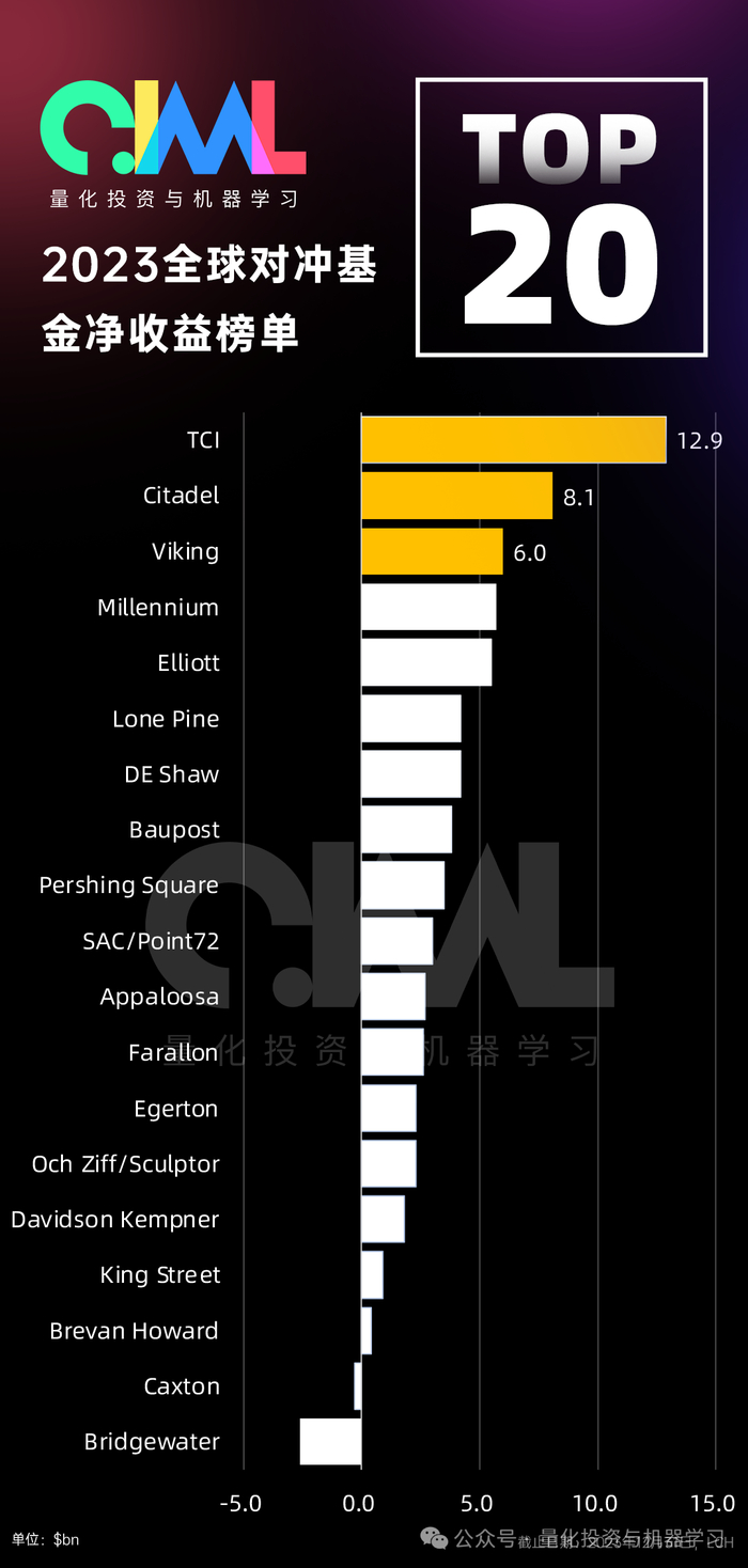 每年,LCH都会公布当年全球前20对冲基金的整体排行榜,从历史的统计来看,2023年,全球TOP20的对冲基金去年实现了有记录以来的最大利润收益(670亿美元)!
