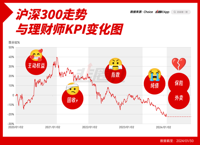 回过头来看,理财师的兄弟姐妹从2020年卖主动权益,寻找中国真股神;到2021年卖固收+,能涨抗跌才是真;再到2022-2023年卖指数,用指数工具抄底权益资产;终于到了现在,亏怕了再也不敢碰权益了,只敢卖纯债赚个安稳钱...
