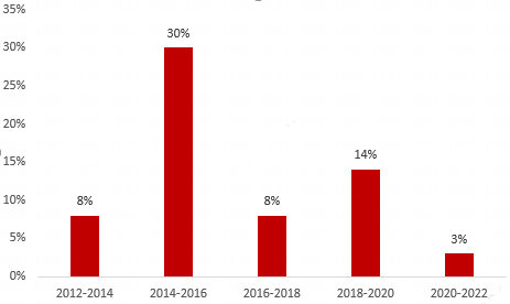 但同时,这股增长的趋势在2022年开始下滑得很快。