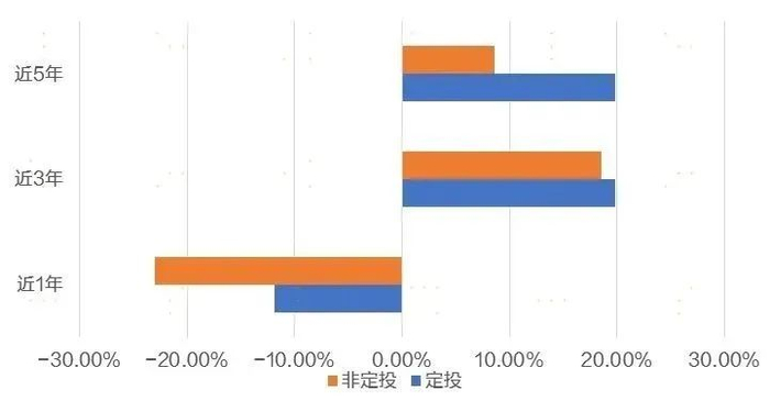 据统计,无论在上涨还是下跌行情区间内,定投投资者的收益情况均优于非定投投资者。