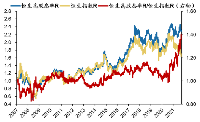 港股:2020年中以来,高股息指数跑赢恒生指数