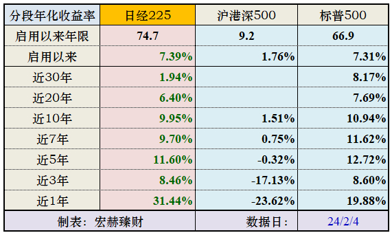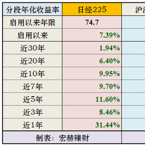 ①日经225指数长期年化收益率是74.7年7.39%。