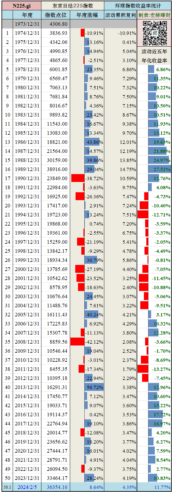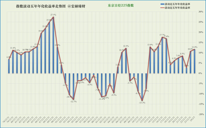 日经225指数滚动五年年化收益率