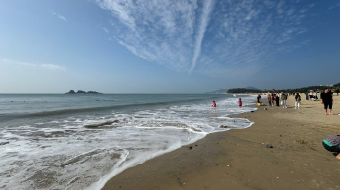 博格觉得茂名的“中国第一滩”的沙子不够细、不够白、还带一丝污泥, 但即便这样还是有很多游客。