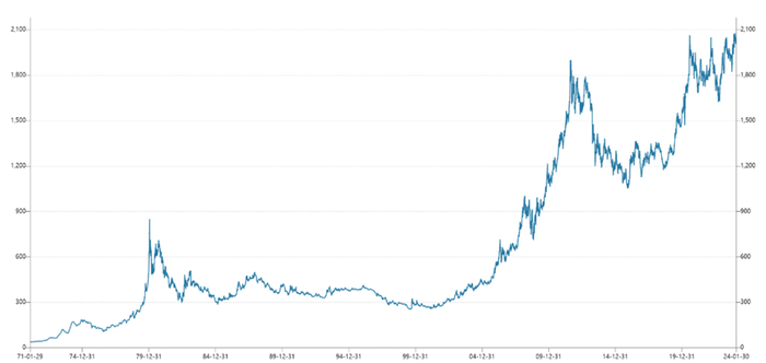 1971年至今伦敦金现货价格走势