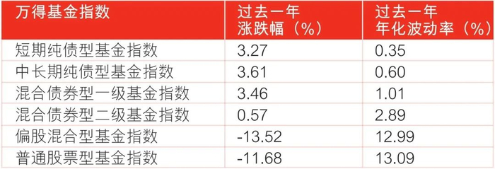 纯债基金1在助力抵御风险的基础上,力求争取收益。2023年,市场波动较为剧烈,以万得基金指数为例:主要权益基金指数过去一年收益表现相对较差,同时年化波动率超过10%,相比之下,中长期纯债型基金指数在年化波动率控制在1%以内的基础上,获得了3.61%的正收益,力控波动的同时争取一定收益