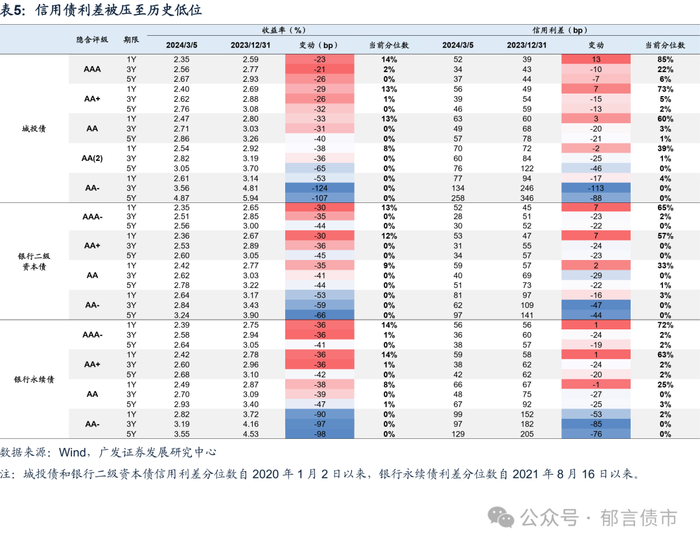 因而,我们已经很难再去通过承担信用风险来获取高票息,只有久期的选择,这也是为什么即使在信用债领域,中长久期的表现也更加强势。2024年以来,各品种信用债收益率下行,信用利差表现分化,1Y AA及以上城投债和银行资本债收益率下行幅度不及国开债,信用利差均小幅走扩。而中长久期及低等级品种交易配置热度很高,信用利差大幅收窄,如中长久期AA- 城投债信用利差收窄88bp以上,银行资本债收窄40bp以上。