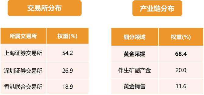 黄金股ETF(517520)跟踪中证沪深港黄金产业股票指数,聚焦内地和香港黄金采掘冶炼和加工销售的上市公司, 指数成分股共47只、主要集中在黄金采掘行业(即金矿公司),前十大成分股涵盖国内金矿龙头。