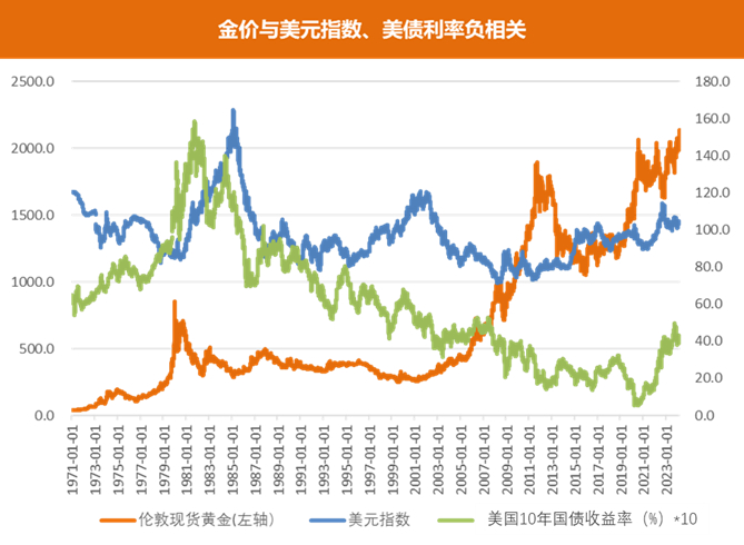 黄金是无息资产,而美债是有息资产,美债实际收益率可视作黄金持有成本,黄金与美债实际收益率负相关,后续美联储降息或将成为后续黄金上涨的重要推动力。