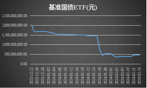 上述的困惑其实不只是某些从业人员的困惑,也是这个行业的困惑。强如ETF老大华夏基金,在过去清盘了一只债券ETF后,于2023年底发行了基准做市国债ETF,包括大庸在内的众多看客,都觉得华夏将改变债券ETF行业现状,用过去积累的ETF生态体系,教各位小老弟做事。只是,万万没想到,该ETF除了改了一次简称外,规模从20亿元萎缩至4亿元左右徘徊,如下图: