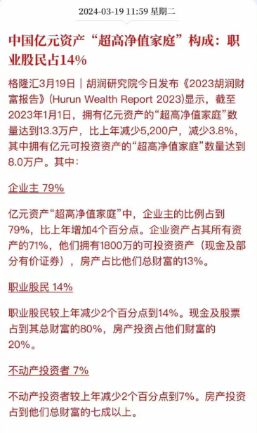 胡润这个财富榜不知怎么总结的。超高净值里有14%职业股民?